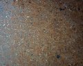 Not an exciting picture but the subject is interesting. The floor is made of finely crushed granite held together with natural glue and resins. It is pounded an polished to make a smooth, solid surface that is “earthquake proof”. Any damage or wear is easily repaired by adding more glue.